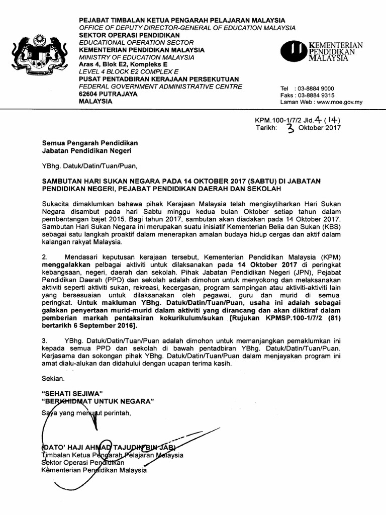 Surat Pekeliling Ikhtisas Kementerian Pendidikan Pdf Document from reader020.staticloud.net Belakangan ini, penempatan tersebut dikritik lantaran dianggap tak relevan, bertentangan dengan semangat akademik, dan rentan konflik. Dalam ucapan perasmian konvensyen kebangsaan ts25, mantan ketua pengarah pelajaran malaysia, tan sri dr. Kementerian pendidikan malaysia (kpm) mengumumkan pelantikan dr habibah abdul rahim sebagai ketua pengarah pelajaran malaysia (kppm) yang baharu berkuat kuasa 10 januari lalu. Sama sama kita nantikan rakaman khas seri paduka baginda yang dipertuan agong dan jemaah menteri malaysia menyanyikan lagu setia sempena kemerdekaan malaysia yang ke 62. Datuk/tuan/ puan, pekeliling ikhtisas kementerian pendidikan malaysia bilangan 5 tahun 2019. Isma mann 3 years ago. Amanat 100 hari pentadbiran ketua pengarah jps malaysia. Khair mohamad yusof berkata, seperti yang selalu beliau.